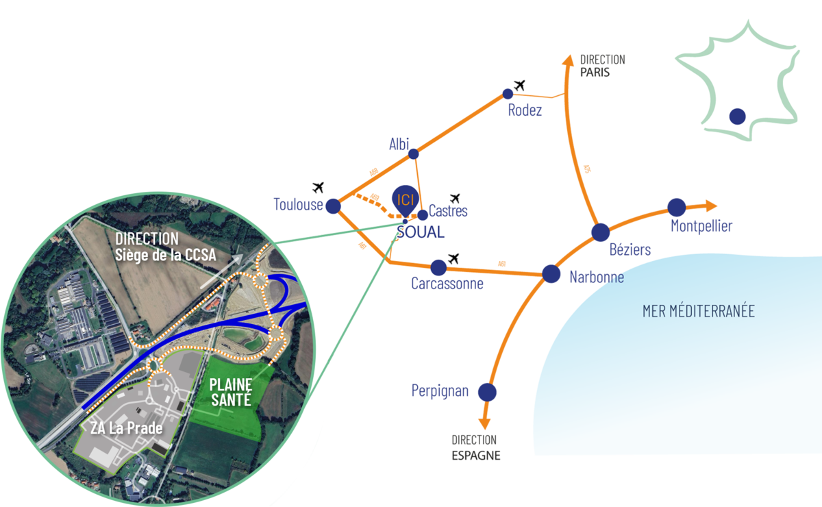 PLAINE SANTÉ Avenue Anne L’Huillier 81580 SOUAL Dans un bassin d’emploi de 144 000 habitants À 30 min de l’agglomération Toulousaine A 10 minutes de Castres